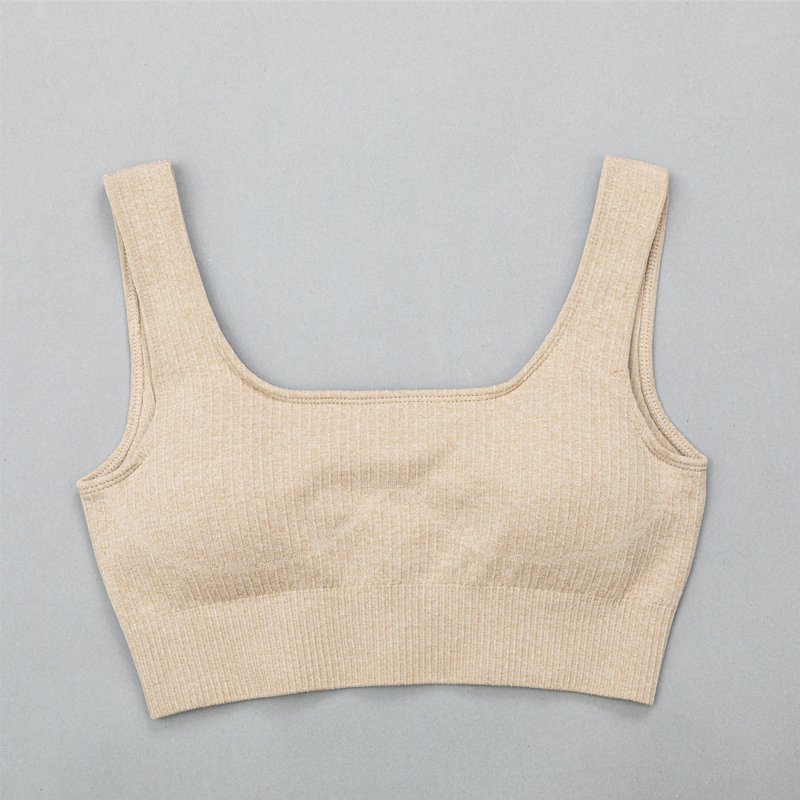 This seamless sports bra is suitable for running, fitness, yoga and workout. The fabric is nylon spandex. The fabric is with good stretch and soft hand feel. The panels sewing by cover stitching. Size from S, M, L, XL, 1XL, 2XL, 3XL.